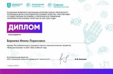 Бариева Илина,ученица 9 класса МБОУ Муслюмовская гимназия призёр очного этапа Всероссийского конкурса научно-технологических проектов "Большие вызовы"