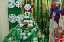 Это наша самая красивая и интересная ёлочка в Муслюмовской гимназии. Вместе с детьми и родителями смастерили эту елку из коробок яиц. Ученики 3в класса так старались: раскрасили коробки в зеленый цвет. В конце работы даже их трудно было различить, они тоже стали зелеными.