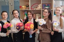 7 сыйныф кызлары, технология дәресендә әниләренә буләккә ромашка чәчәкләре бәйләделәр