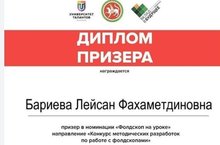 Учитель биологии Бариева Л.Ф. стала призёром конкурса методических разработок по работе с фолдскопами. Поздравляем