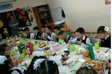 Учащиеся 1 б класса на празднике"Прощай, Букварь!".Классный руководитель -Мирзасалихова Г.Ш.