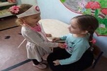 Тәрбияче балаларга һөнәрләр турында әңгәмә үткәрде.Балалар үзләренең әти-әниләренең кем булып эшләвен әйттеләр.Укытучы,шофер,китапханәче,тәрбияче булып эшләгәннәрен сөйләделәр.Һәр һөнәрнең кирәкле булуын сөйләделәр.Соңыннан балалар уен уйнадылар,"Табиб янына" тикшеренергә килделәр.