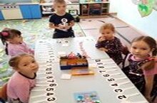 Тәрбияче Зилә Гәрәйхан кызы балаларга ике кечкенә саннан 5 санын төзүне аңлатты.Балалар теманы бик тиз аңлап алдылар.Карточкалардан саннарны үсә бару тәртибендә һәм кими бару тәртибендә санадылар.Кәгазь битендә ориентлашу күнегүләре башкарылды. Уңда,сулда,алда,артта сүзләрен кулландылар.