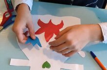 Мәктәпкәчә яшьтәге балалар төркеме. Әниләргә котлау открыткалары ясау. Якынлашып килүче бәйрәм белән!