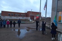 Церемония поднятия Государственных флагов РФ, РТ и флага Муслюмовского муниципального района. Дәүләт флагларын күтәрү церемониясе.