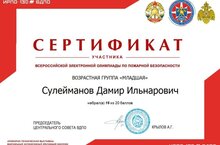 Производится по разработанным вопросам из тематики пожарная безопасность, история пожарной охраны и добровольчества в виде тестовых вопросов. Обучающиеся младшей группы нашей школы проходят всероссийскую электронную олимпиаду по пожарной безопасности и получают сертификаты.