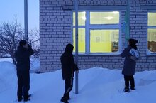 5,8,9 нчы сыйныф укучылары мәктәп директоры Хафизов Р. Ф. җитәкчелегендә Ц. Саимә әбинең капка алдын кардан чистарттылар