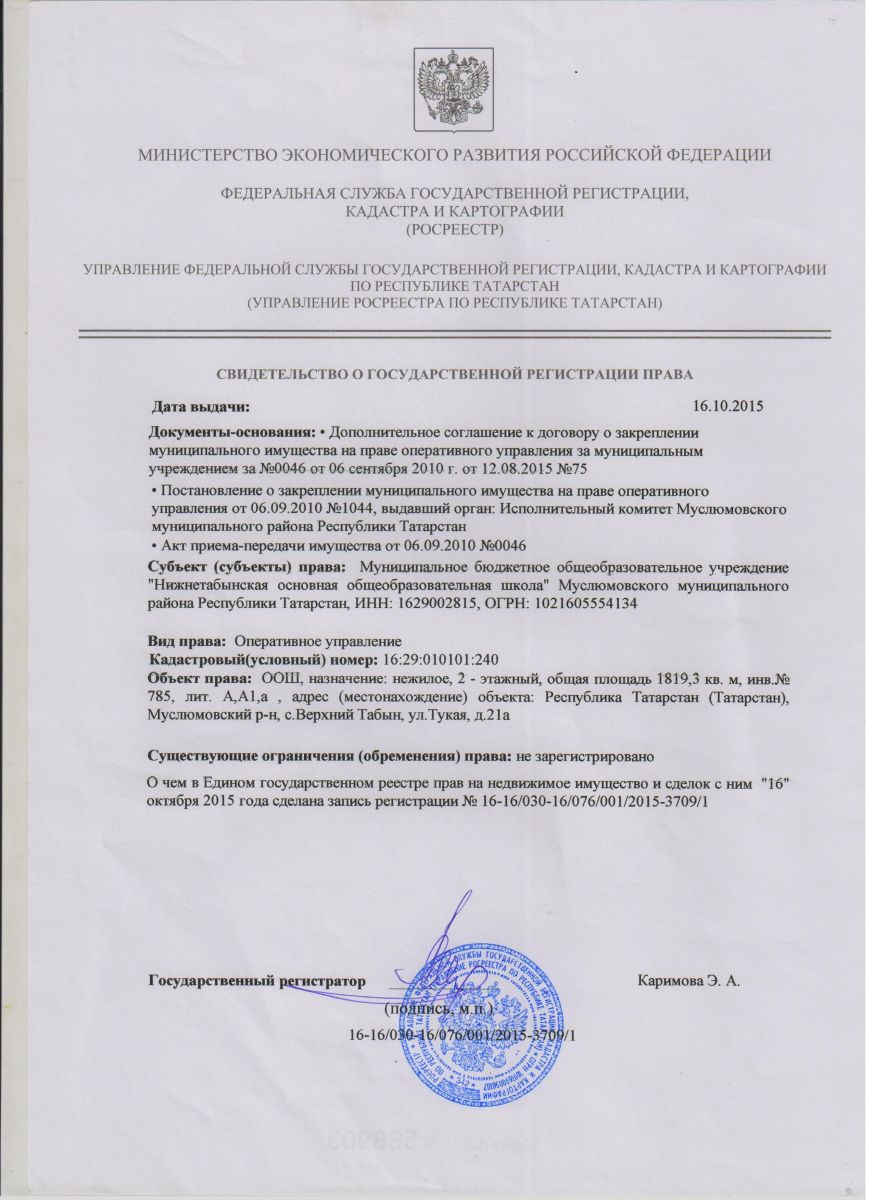 Адрес: 423977, Республика Татарстан, Муслюмовский район, село Верхний Табын, улица Тукая, дом 21, корпус А
