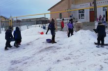 Коллектив школы принял участие в строительстве снежного городка.