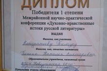 Ученик 9 класса Кондратьев Т. принял участие в межрайонной научно-практической конференции “Духовно-нравственные истоки русской литературы”, состоявшейся в с. Сарманово РТ, и стал победителем в номинации «Авторские работы, посвященные популяризации русского языка» с авторским стихотворением «В защиту русского языка».