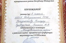 Ученик 8 класса Кондратьев Т. принял участие в районной научно-практической конференции школьников им.Л.Н.Толстого и занял I место в номинации "Исследовательская работа".Руководитель учитель русского языка и литературы Тонких Н.В. 02.03.2017