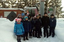 Учащиеся начальных классов Новоусинской ООШ Муслюмовского муниципального района у памятника павшим в ВОВ. Военно-патриотический месячник. 01.02.2017