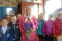 Хезмәт һәм тыл ветераны Тазова Агниса апаны 1,3 сыйныф укучылары 85 яшьлек юбилее белән котладылар. 12.10.2015