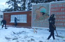 Ученики 9 класса продолжают шефство над обелиском села. Ко Дню героев Отечества очистили территорию обелиска от снега. 10.12.2013