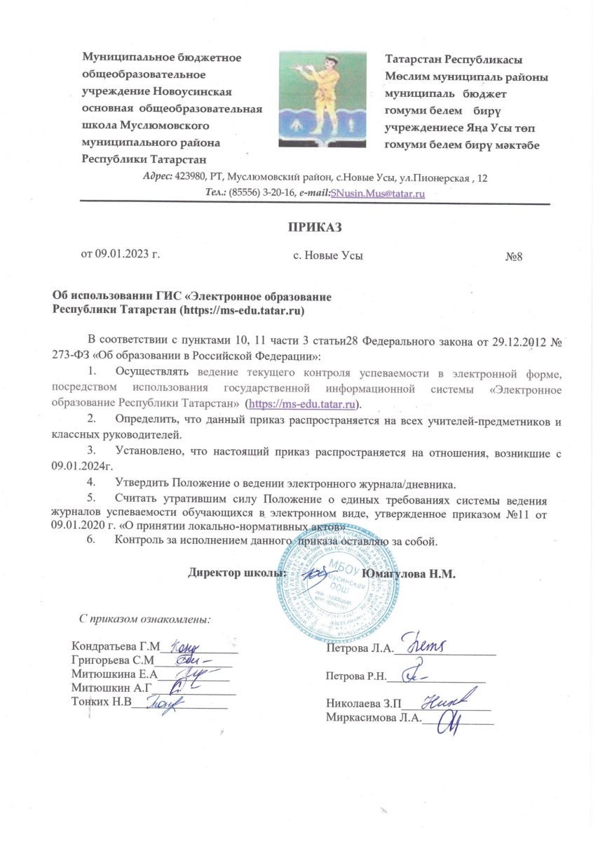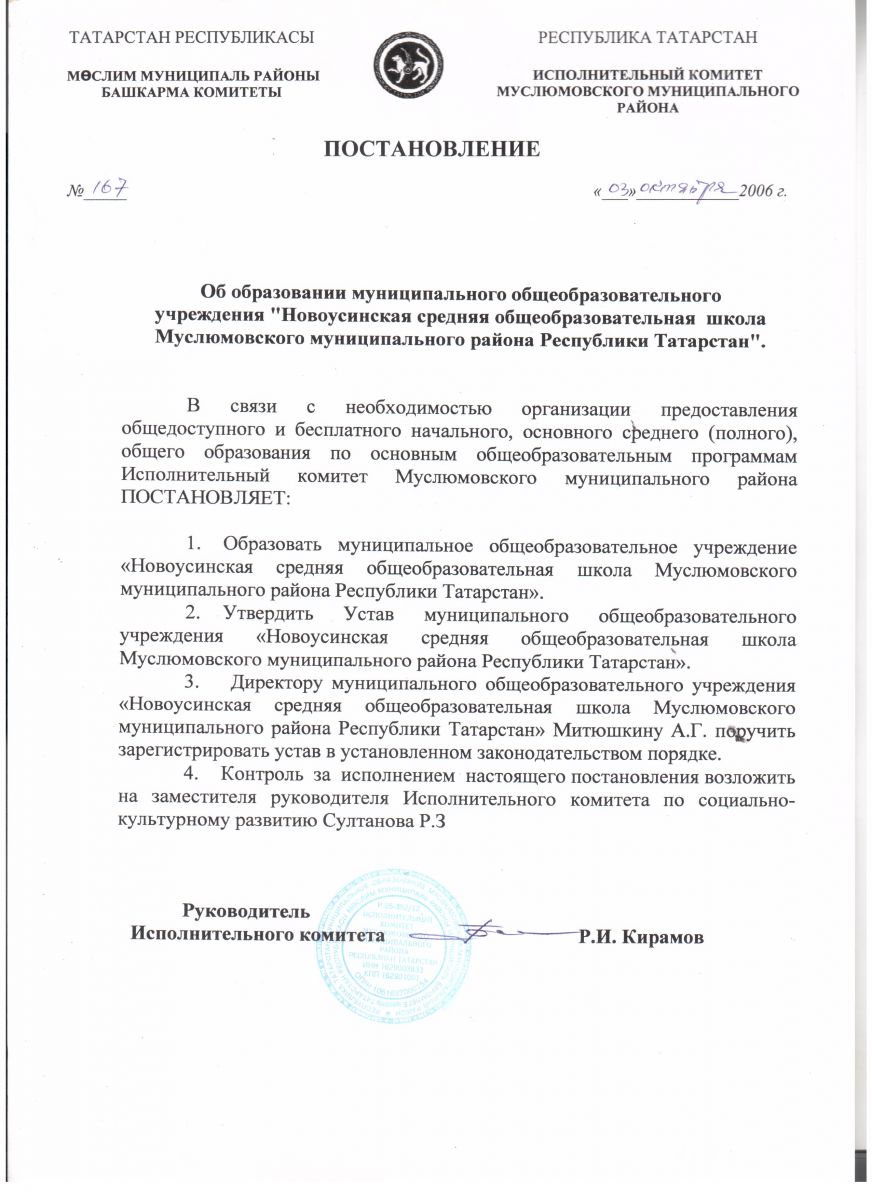 Муниципальное бюджетное общеобразовательное учреждение Новоусинская основная общеобразовательная школа Муслюмовского муниципального района Республики Татарстан
