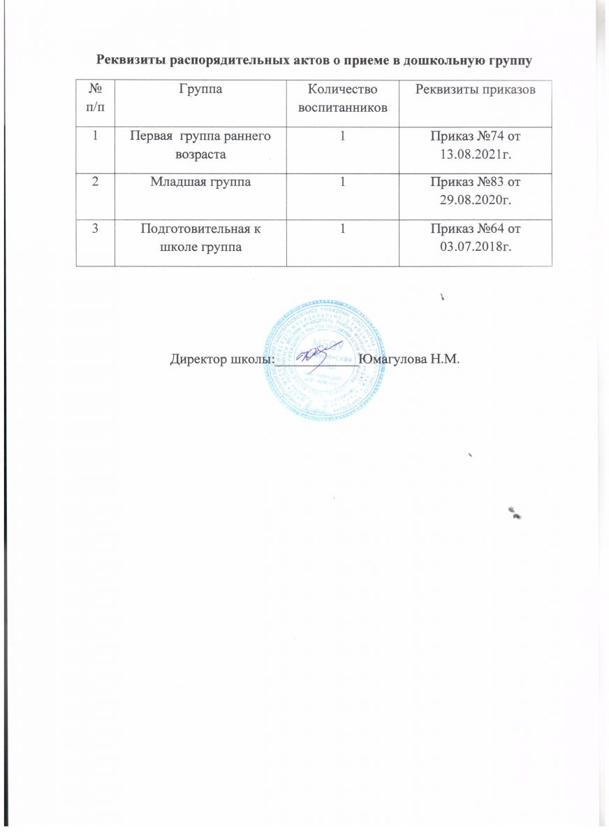 Реквизиты распорядительных актов о приеме в дошкольную группу