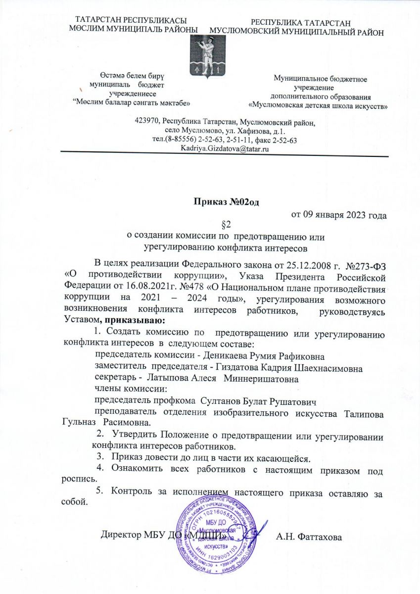 Приказ о создании комиссии по предотвращению или урегулированию конфликта интересов