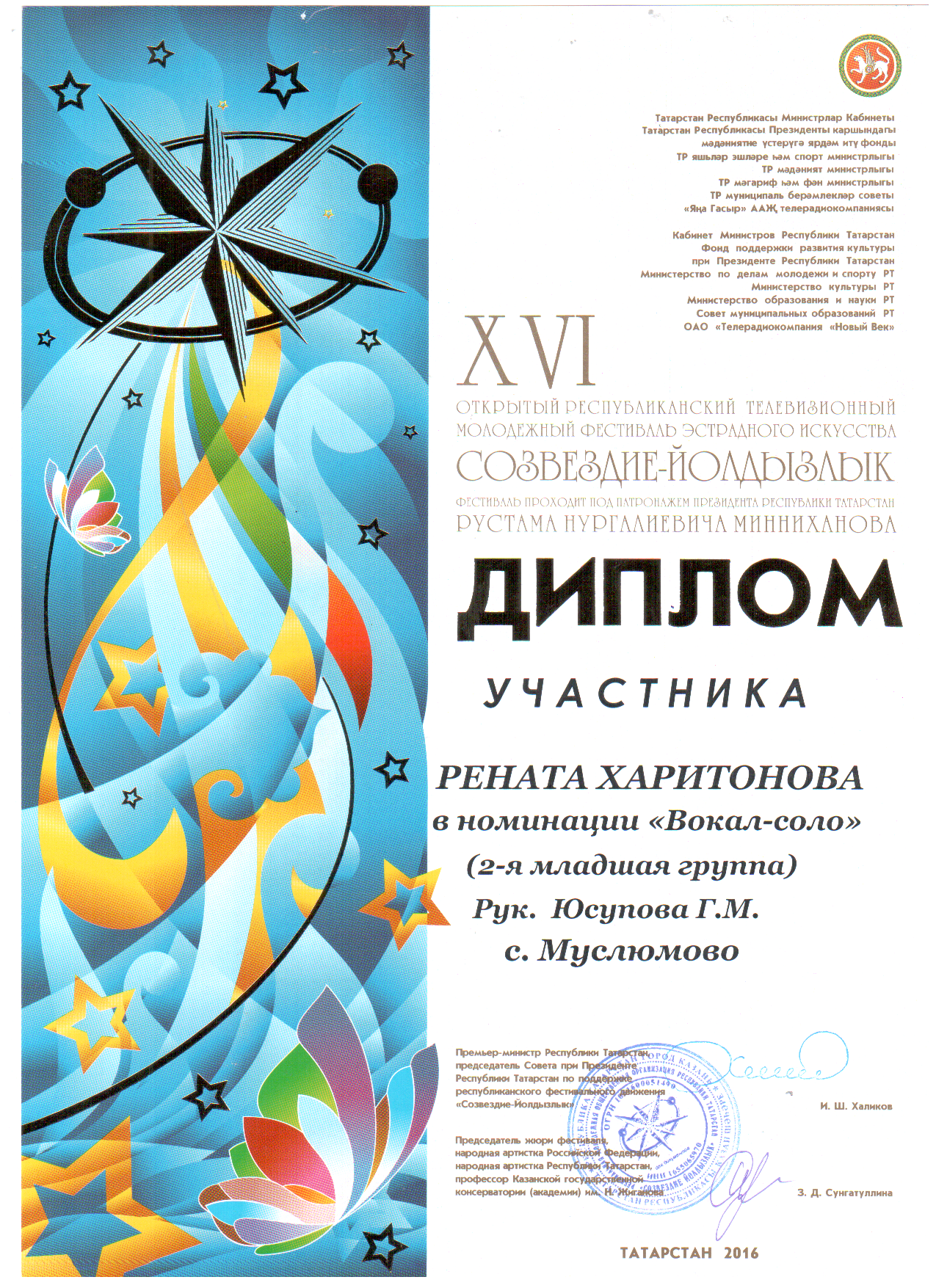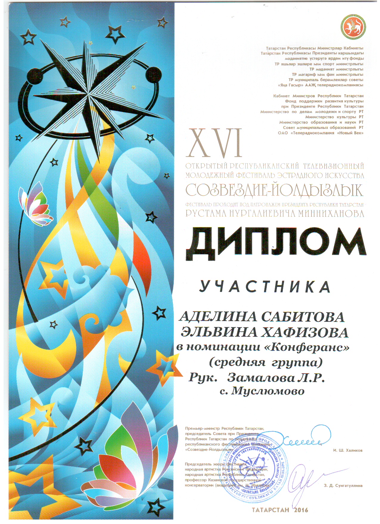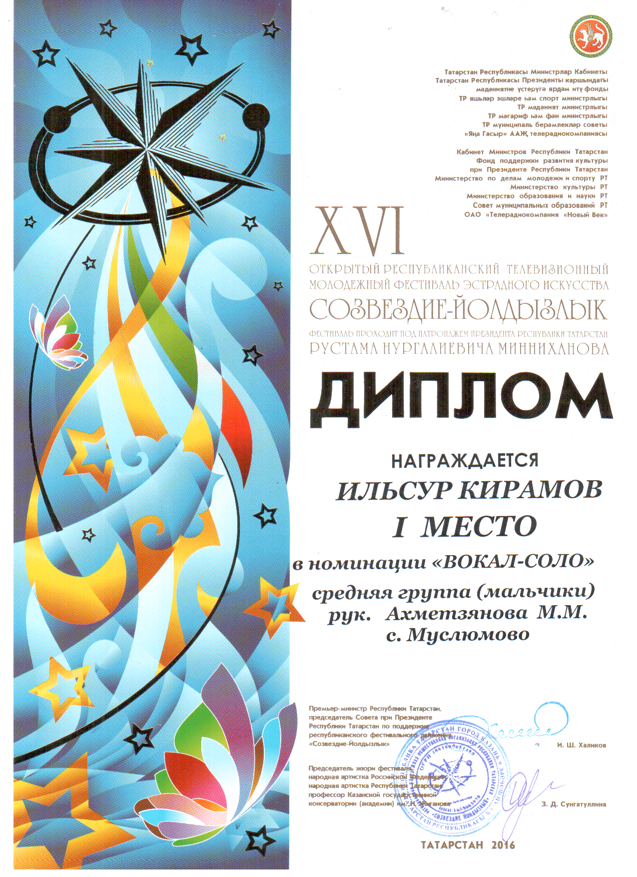 Киямова Язиля. Диплом лауреата I степени Республиканского конкурса "Юный музыкант" им. Ф.З. Яруллина