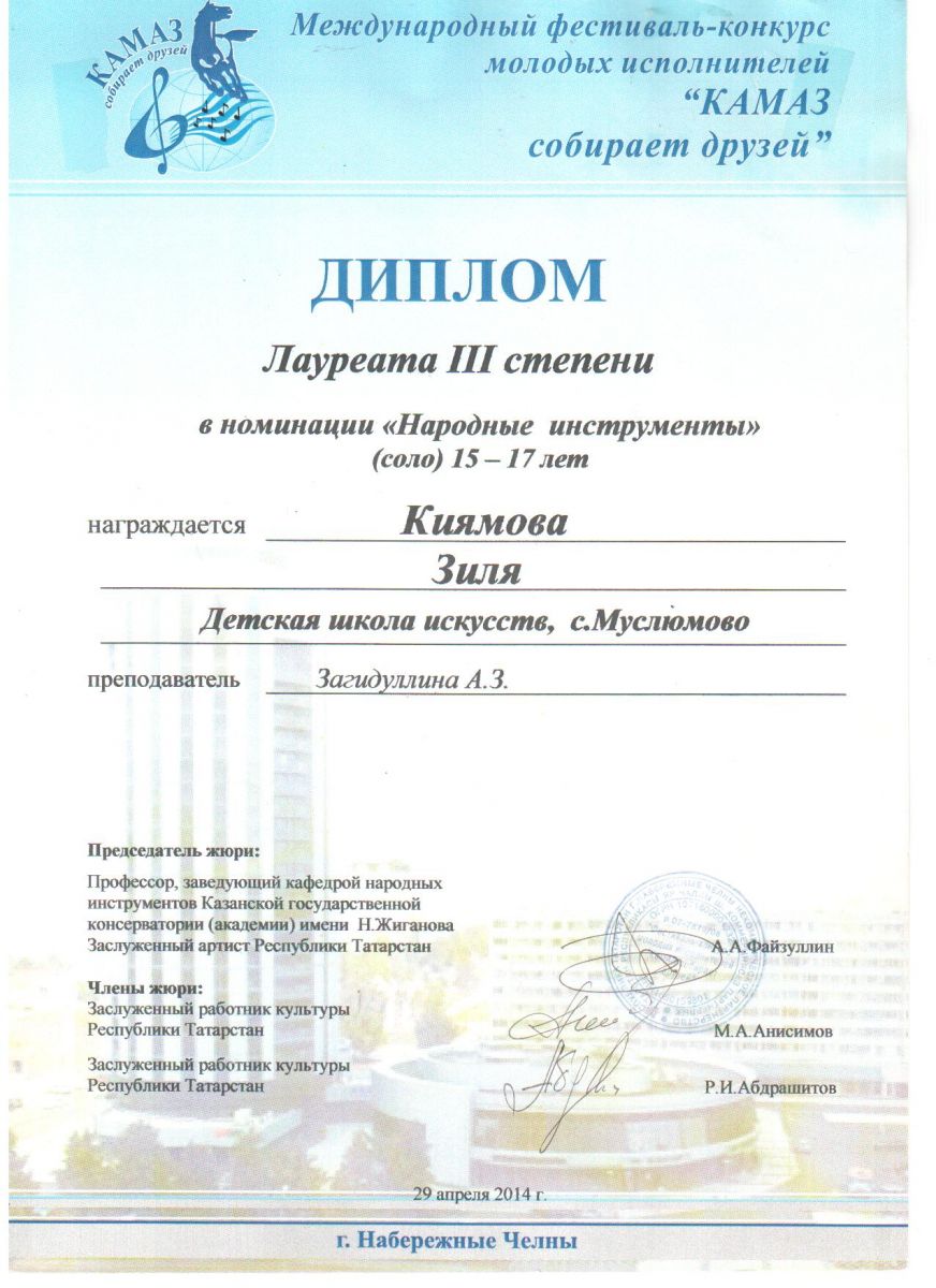 Киямова Зиля. Лауреат III степени международного фестиваль-конкурса "Камаз собирает друзей".