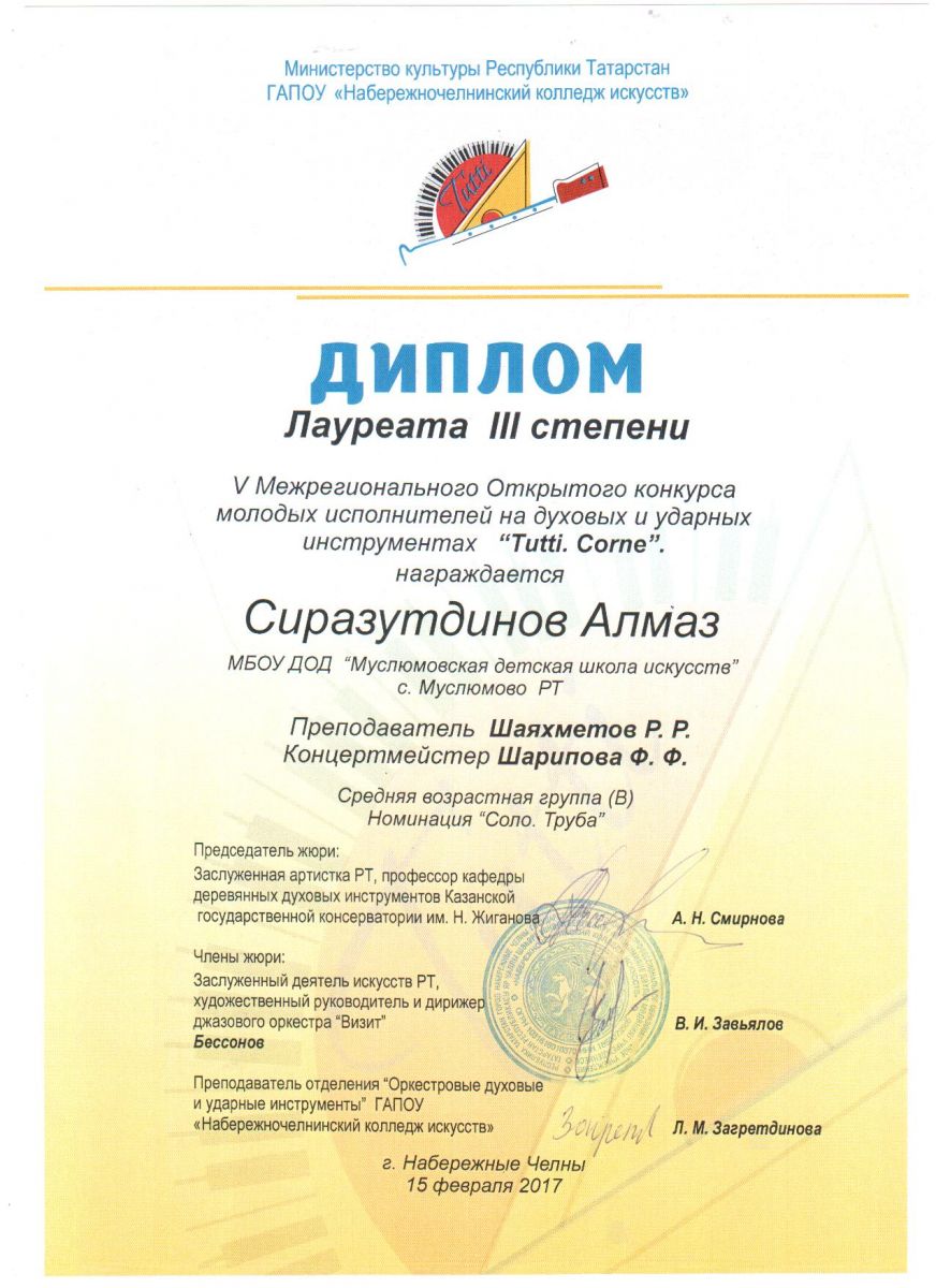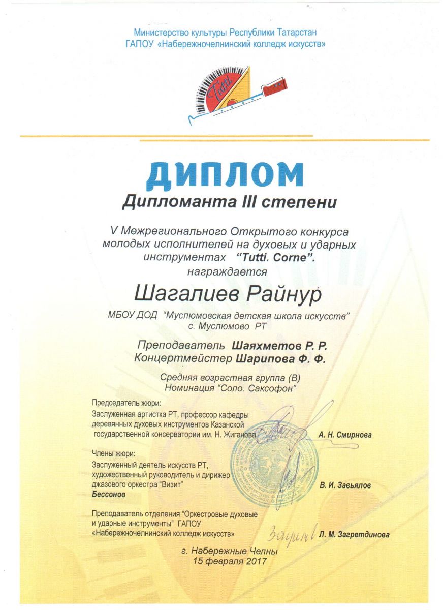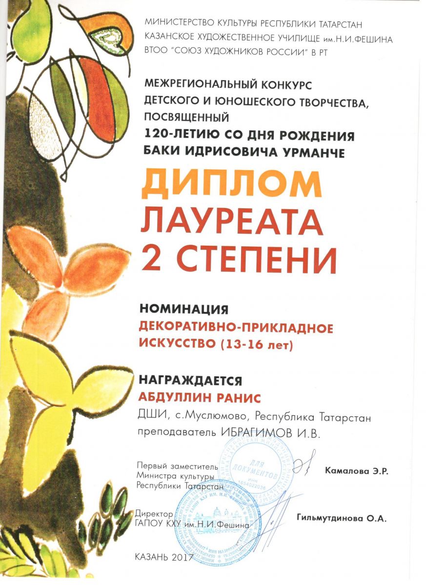 Гусманов Айнур. Диплом XX регионального фестиваля детского творчества "Страна поющего соловья".