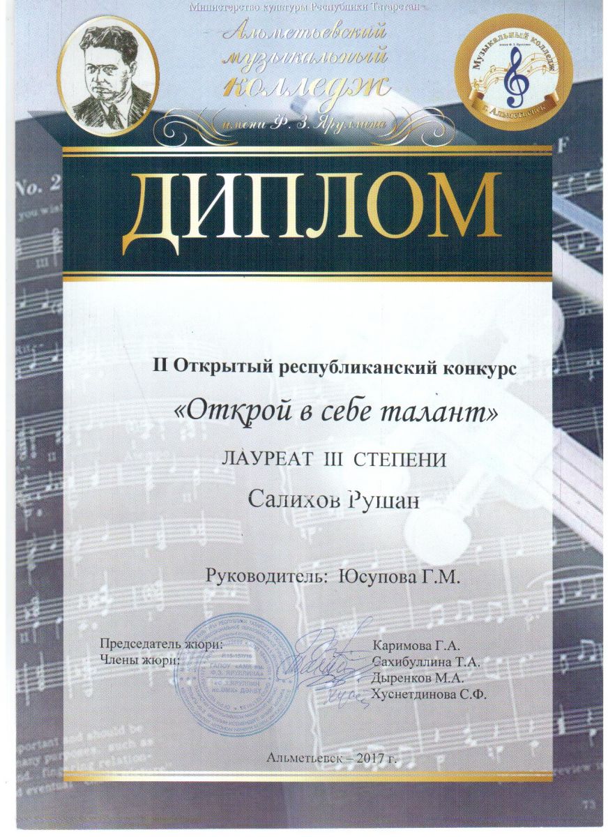 Рушан Салихов. Лауреат III степени II Открытого республиканского конкурса "Открой в себе талант"