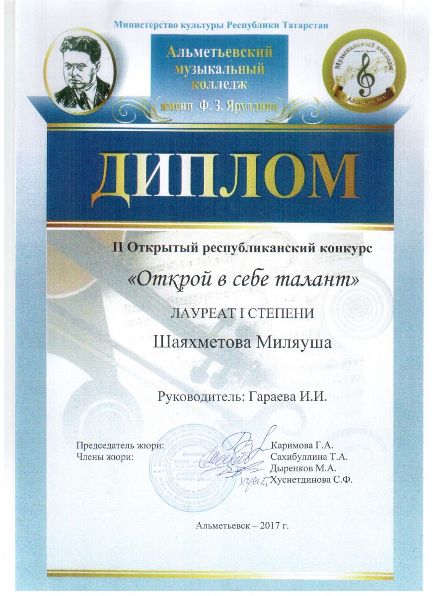 Миляуша Шаяхметова. Лауреат I степени II Открытого республиканского конкурса "Открой в себе талант"
