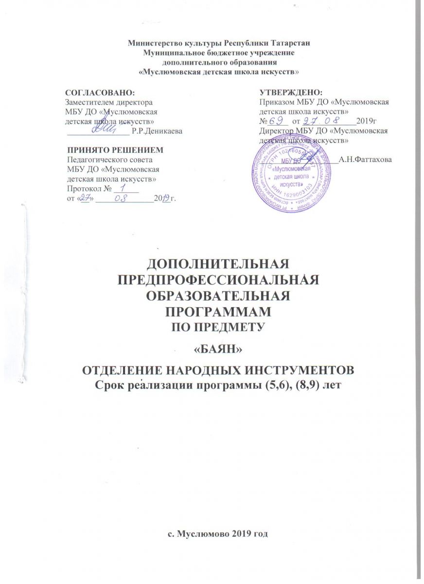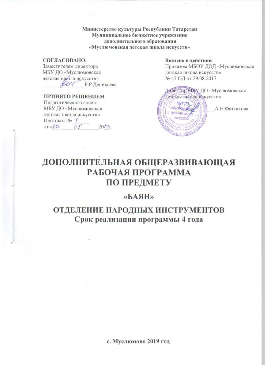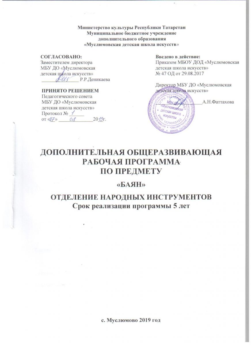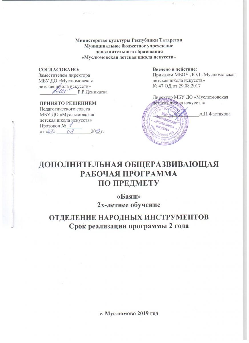Дополнительная общеразвивающая рабочая программа по предмету "Баян" 2х-летнее обучение 2019 г.