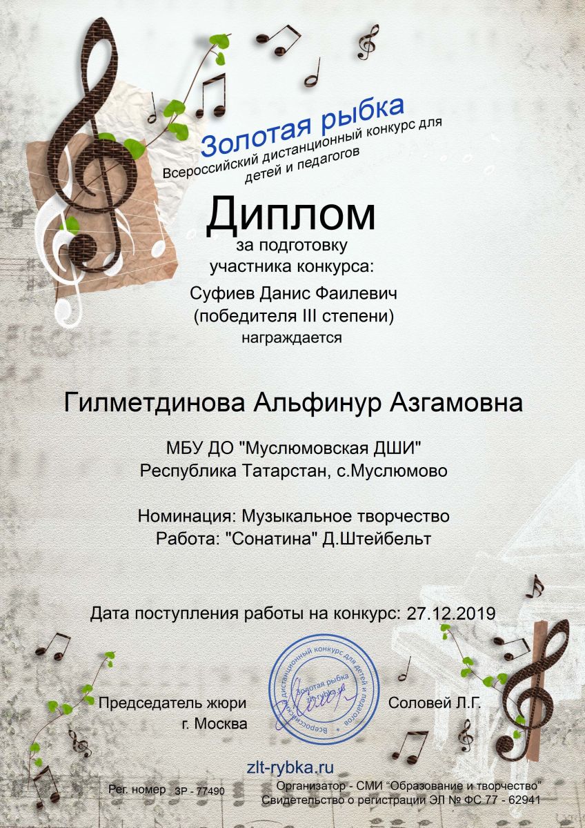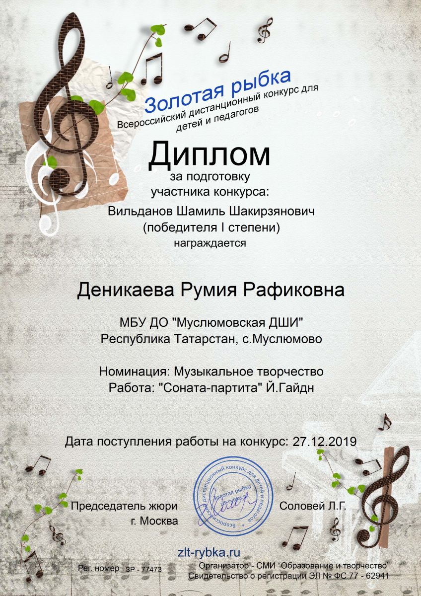 Шаяхметов Рунар Расихович. Диплом за подготовку участника конкурса. Всероссийский дистанционный конкурс для детей и педагогов «Золотая рыбка».