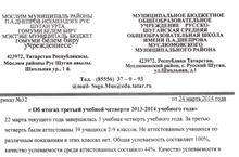 Сегодня началась последняя четвертая учебная четверть этого учебного года. Итоги Прошлой 3 четверти таковы: из 51 учащегося школы были аттестованы 39. При 100%-ной успеваемости, ее качество составило лишь 44%. С приказом об итогах учебной четверти можно ознакомиться здесь.