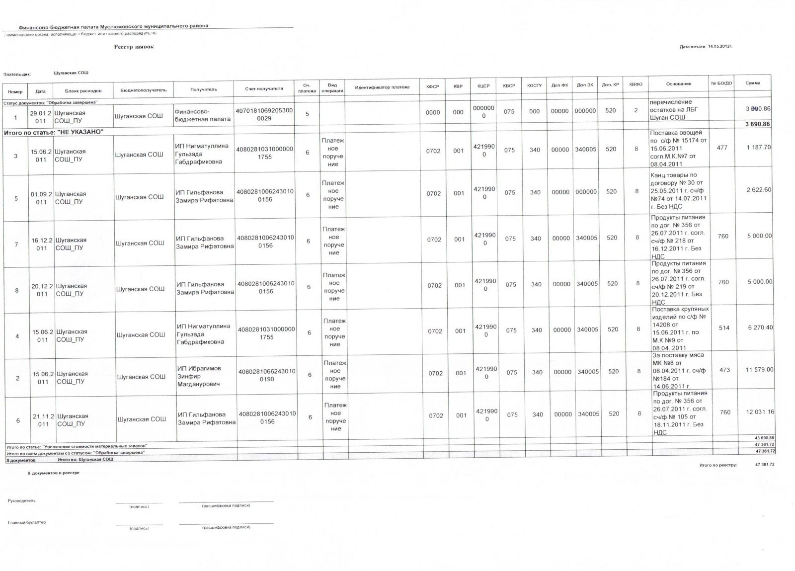 Расходование внебюджетных средств в МБОУ Русско-Шуганская СОШ, поступивших в 2012 году.