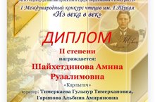 Г.Тукай шигырьләрен ятан сөйләүчеләрнең I Халыкара конкурсында катнашып Шайхетдинова Әминә II дәрәҗә дипломга лаек булды.
