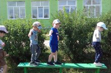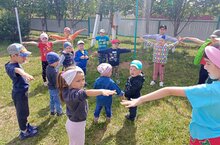 Балалар белән иртәнге гимнастика саф һавада үтә. Саф һавада үткәрелгән гимнастика кан - тамырлары, сулыш алу, мускул һәм башка мөһим организм системаларының үсешенә булышлык итә.