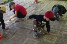 Балалар белән сәнгатькә мәхәббәт тәрбияләү максатыннан акбур белән сүрәтләр төшердек. Ясаган рәсемнәрдә - җәй бизәкләре һәм, әлбәттә барысында да нур сибүче кояш!