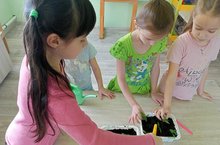 Балалар белән тәҗрибә участогына утырту өчен савытларга баллы борыч үсентеләре утырттык. Үсентеләрне карап, тәрбияләп тору өчен җаваплы балалар билгеләдек.