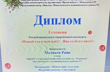 Республикакүләм үткәрелгән конкурсларда һәрдаим катнашып киләбез. "Яңа ел килә безгә" исемле Республикакүләм иҗади конкурсында катнашып, Маликов Раян "Яна ел эшләнмәләре" номинациясендә I дәрәҗә дипломга ия булды. Киләчәктә дә Раянга уңышлар телибез!