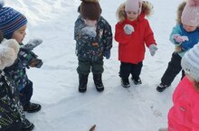Кечкенәләребез белән саф һавада кар бөртекләрен күзәттек. Максат-балаларның кар бөртекләре турында күз аллауларын формалаштыру, табигать матурлыгына соклана белү хисләре тәрбияләү.