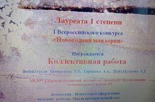 Тәрбиячеләр : Гарипова А.А., Тимеркаева Г.Т., Шайхайдарова Г.Д., Яңа елга багышланган IБөтенрәсәй "Яңа ел мандарины"исемле конкурсында катнашып ,мастер-класс номинациясендә 1 дәрәҗә дипломга ия булдылар