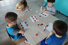 Кечкенәләр төркеме балалары кисеп-ябештерү эшчәнлегендә геометрик фигуралар белән келәм бизәделәр. Түгәрәк һәм шакмакларны чиратлаштырып ябештерделәр.