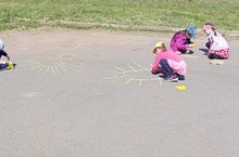 Зурлар төркеме балалары белән "Һәрвакыт булсын кояш" дигән темага асфальтта рәсем ясадык.