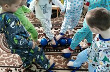 Кечкенәләр төркеме балалары физик культура эшчәнлегендә бер-бер артлы йөрергә, йөгерергә, гимнастик скамейкадан гәүдәне туры тотып йөрергә өйрәнәләр.