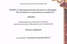 Бакча педагоглары театр коллективы Театр здоровья" зона конкурсында катнашып ,"Лучшая актёрская работа" номинациясендә дипломга ия булдылар.