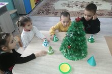 Якынлашып килүче Яңа ел бәйрәме уңаеннан кечкенәләр төркемендә тәрбияләнүчеләр кисеп ябыштыру эшчәнлегендә чыршы ясадылар һәм аны төрле төстәге түгәрәкләр белән бизәделәр.