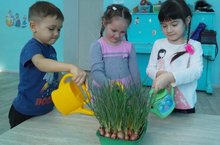Кечкенәләр төркемендә тәрбияләнүчеләр табигать почмагында суган үстерәләр.