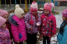 На прогулке дети старшей группы наблюдали за вновь выпавшим снегом, закрепили знания о свойствах снега.