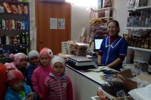 Зурлар төркеме авыл кибетенә экскурсиягә бардылар. Алар сатучы хезмәте белән таныштылар.