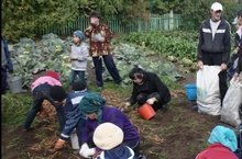 Мәктәп яны тәҗрибә участогында көзге өмә үткәрелде, яшелчәләр кышкы саклауга куелды.