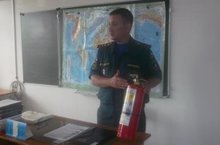 МЧС вәкиле Идиатуллин Р.Р. укучылар белән очрашып, янгын куркынычсызлыгы кагыйдәләре белән таныштырды, өйрәтү дәресе үткәрде.