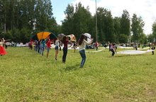 Укучылар группасы, район коллективлары составында, Сабантуйга багышланган чарага зәерлек алып бара.