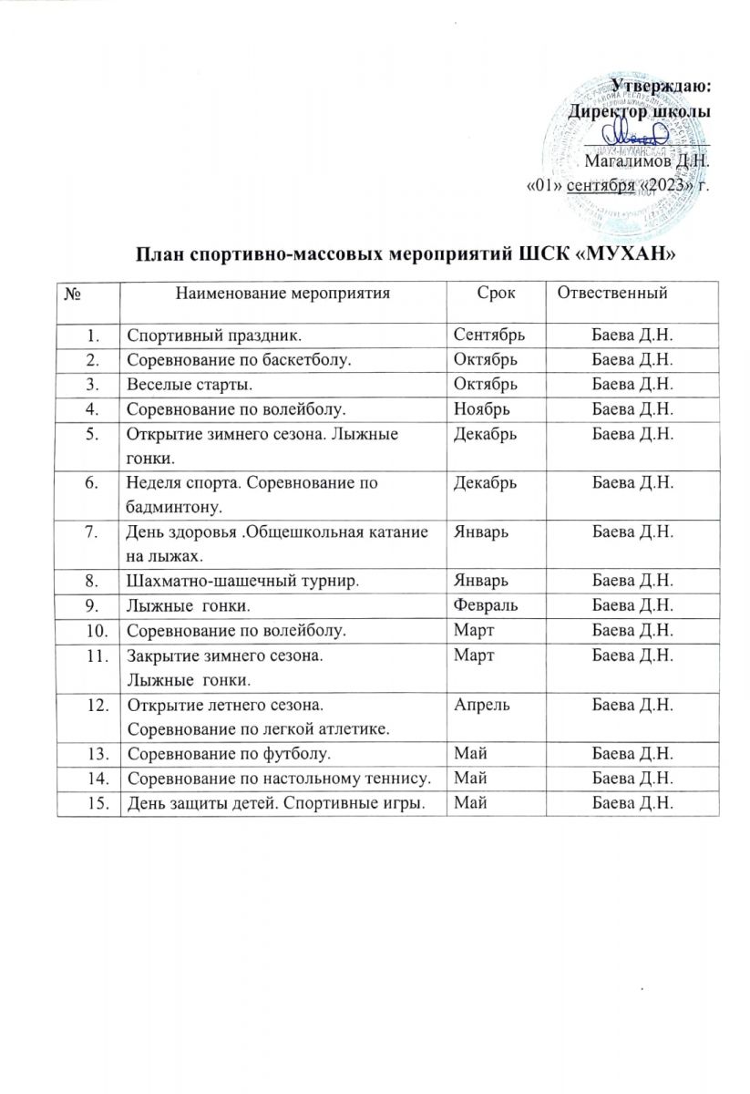 - План спортивно -массовых, физкультурно - спортивных и социально - значимых мероприятий на 2023-2024 у.г.