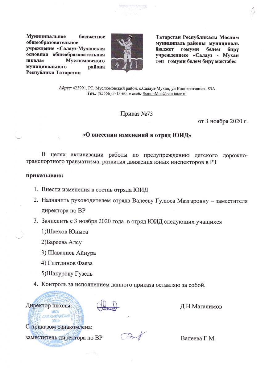 | Адрес: | 423991, Республика Татарстан, Муслюмовский район, с. Салауз-Мухан, ул. Кооперативная, д. 85А |